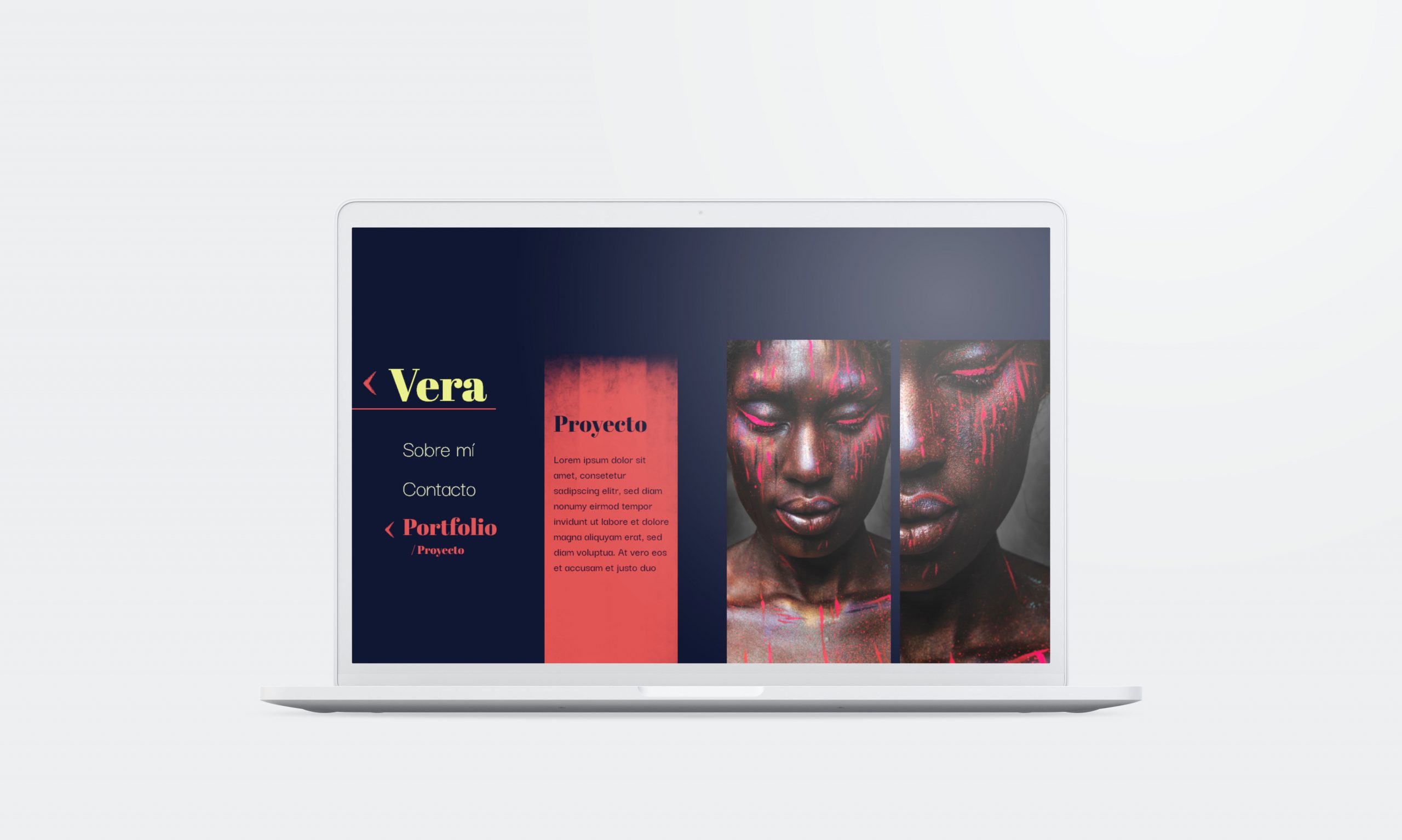 En este caso, el portfolio sería para un artista del maquillaje. Los colores, la disposición de los elementos, el acabado de cada objeto,… todo está configurado para mostrar la fuerza y la expresividad del artista que representa.